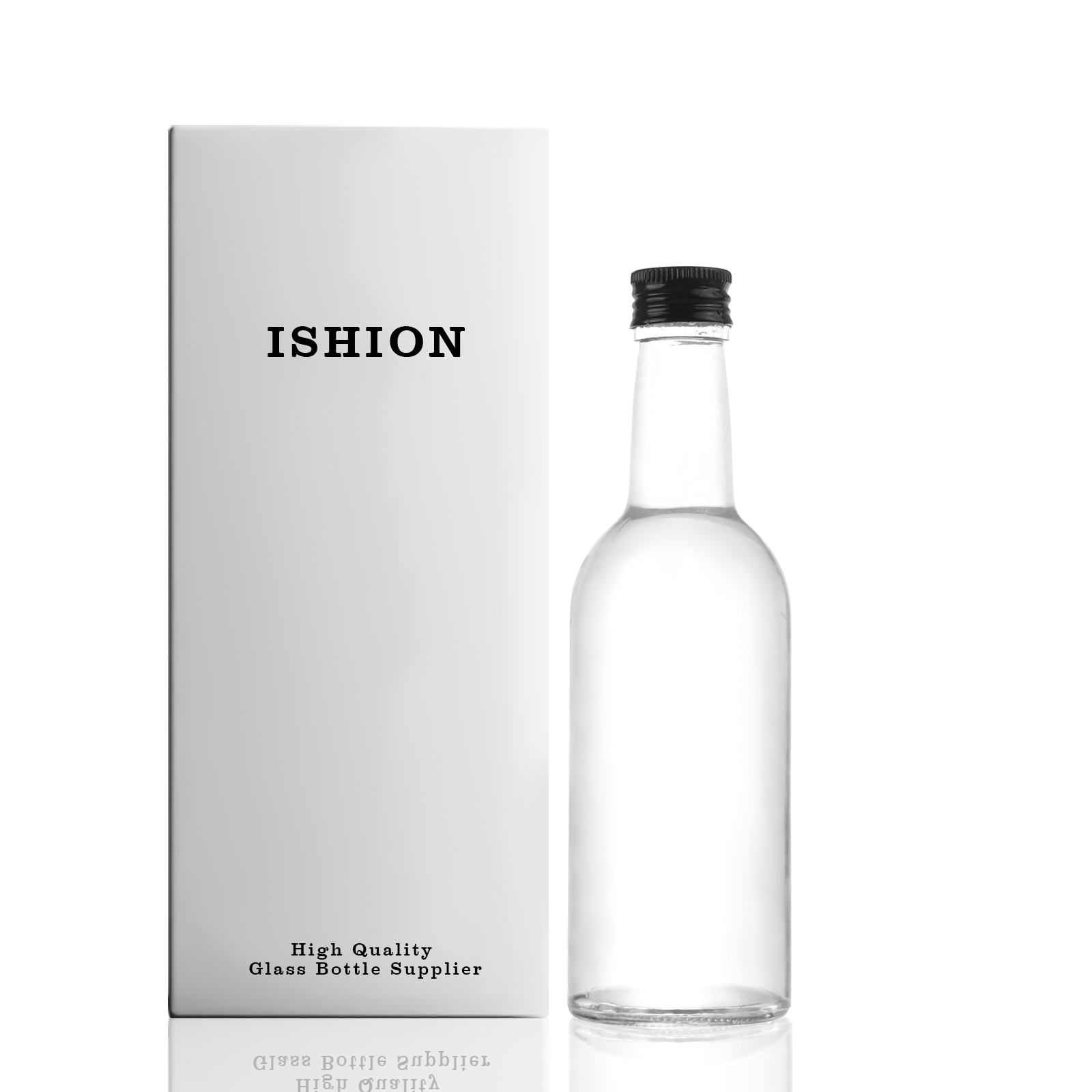 We present a premium wine glass bottle, perfect for a variety of beverages. Crafted with high-quality materials, it ensures durability and maintains the freshness of contents. The elegant design with a sleek black cap adds a sophisticated touch, making it versatile for both personal and professional use. Ideal for oils, vinegars, spirits, and more, this bottle is a stylish and practical choice for any setting.