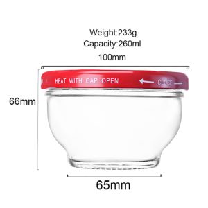 Generous Capacity and Convenient Size: With a capacity of 260ml, this Bird Nest Caviar Glass Jar offers ample space for a variety of food items, from soups and stews to desserts and snacks. The dimensions, featuring a 66mm height and a 65mm base diameter, make it compact enough to fit easily in most refrigerators and cupboards, while still providing a substantial storage solution.