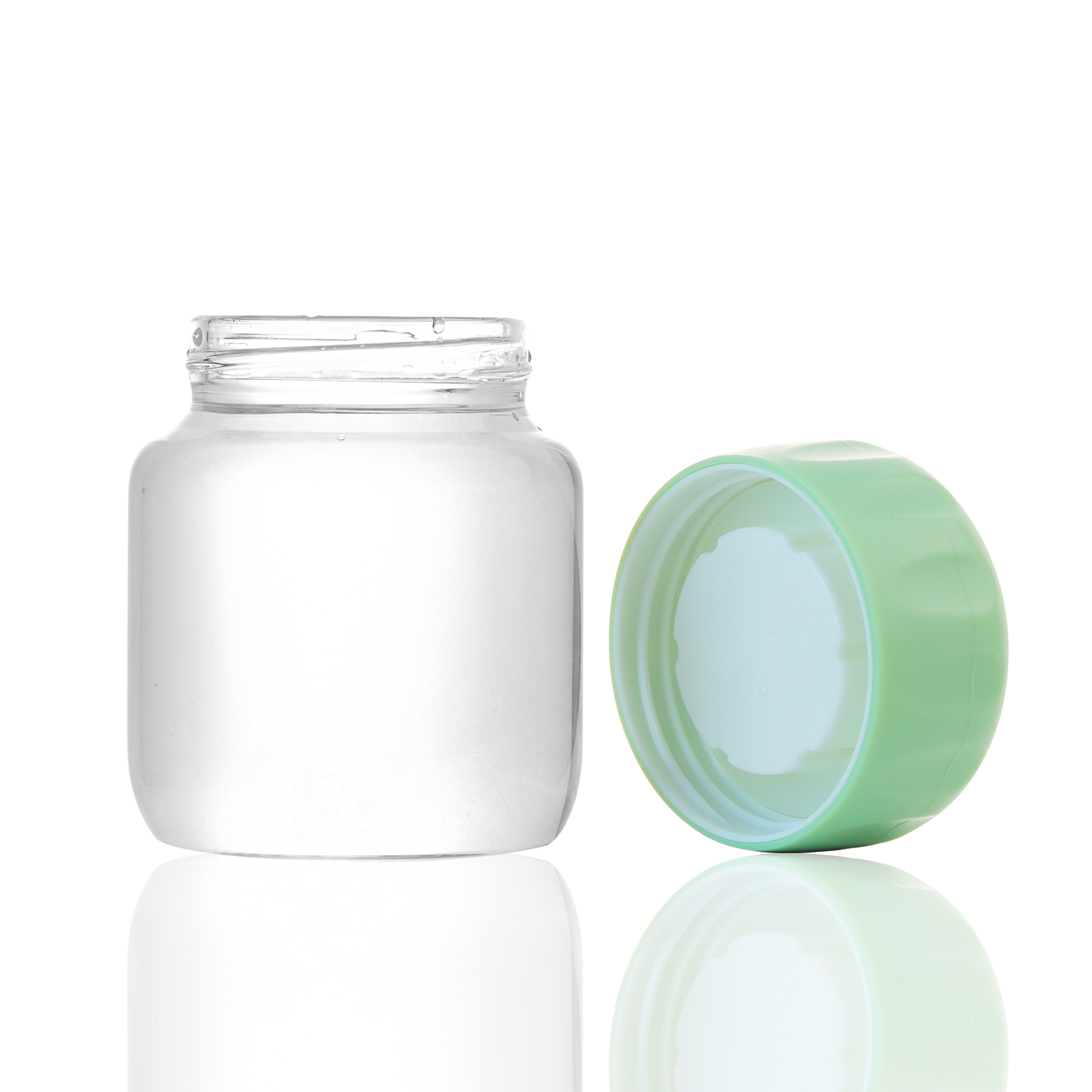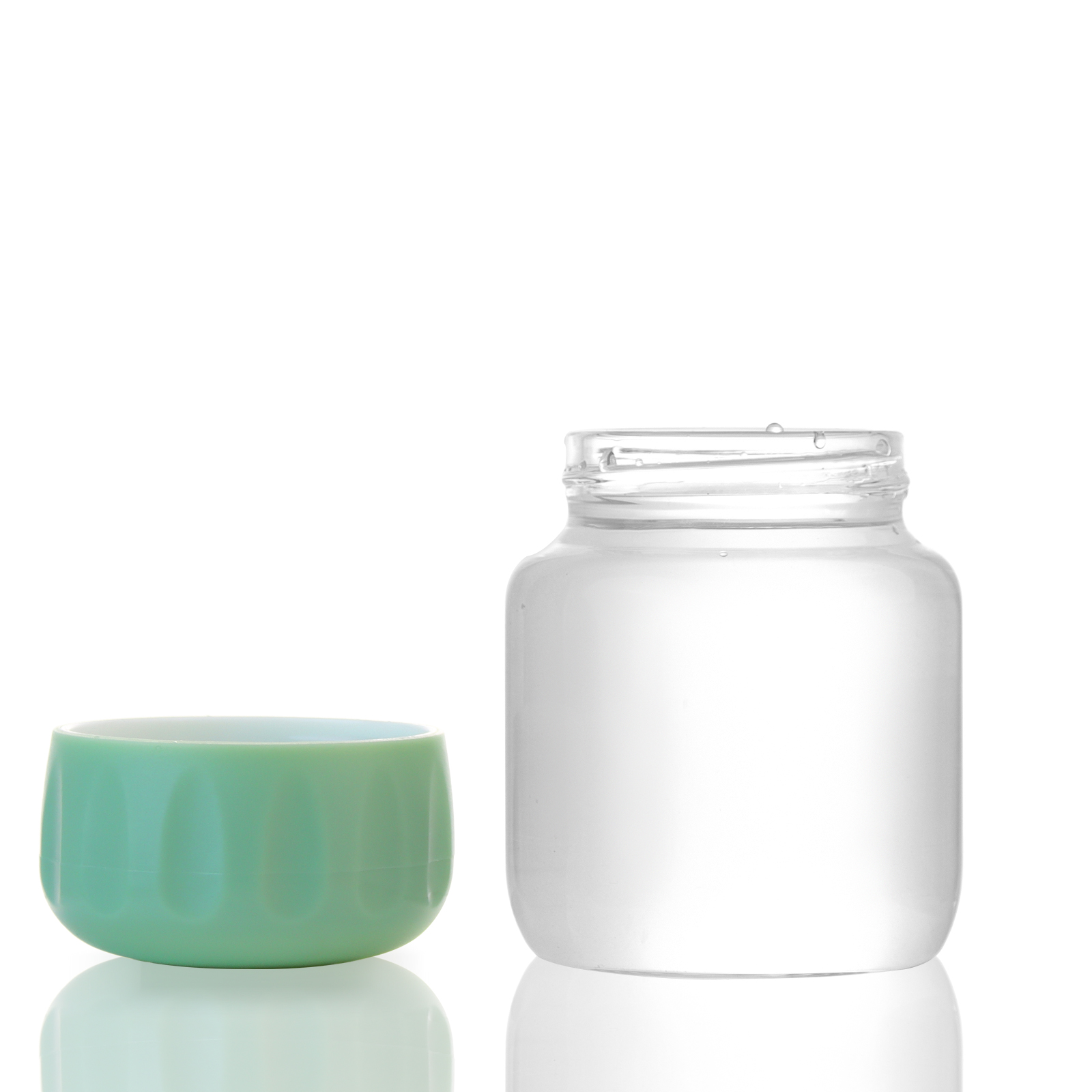 The Small Glass Drinking Bottle features a silicone lid that provides an airtight seal, ensuring that the contents remain fresh and protected from external elements. This lid is not only practical but also adds a touch of color to the jar, making it visually appealing.