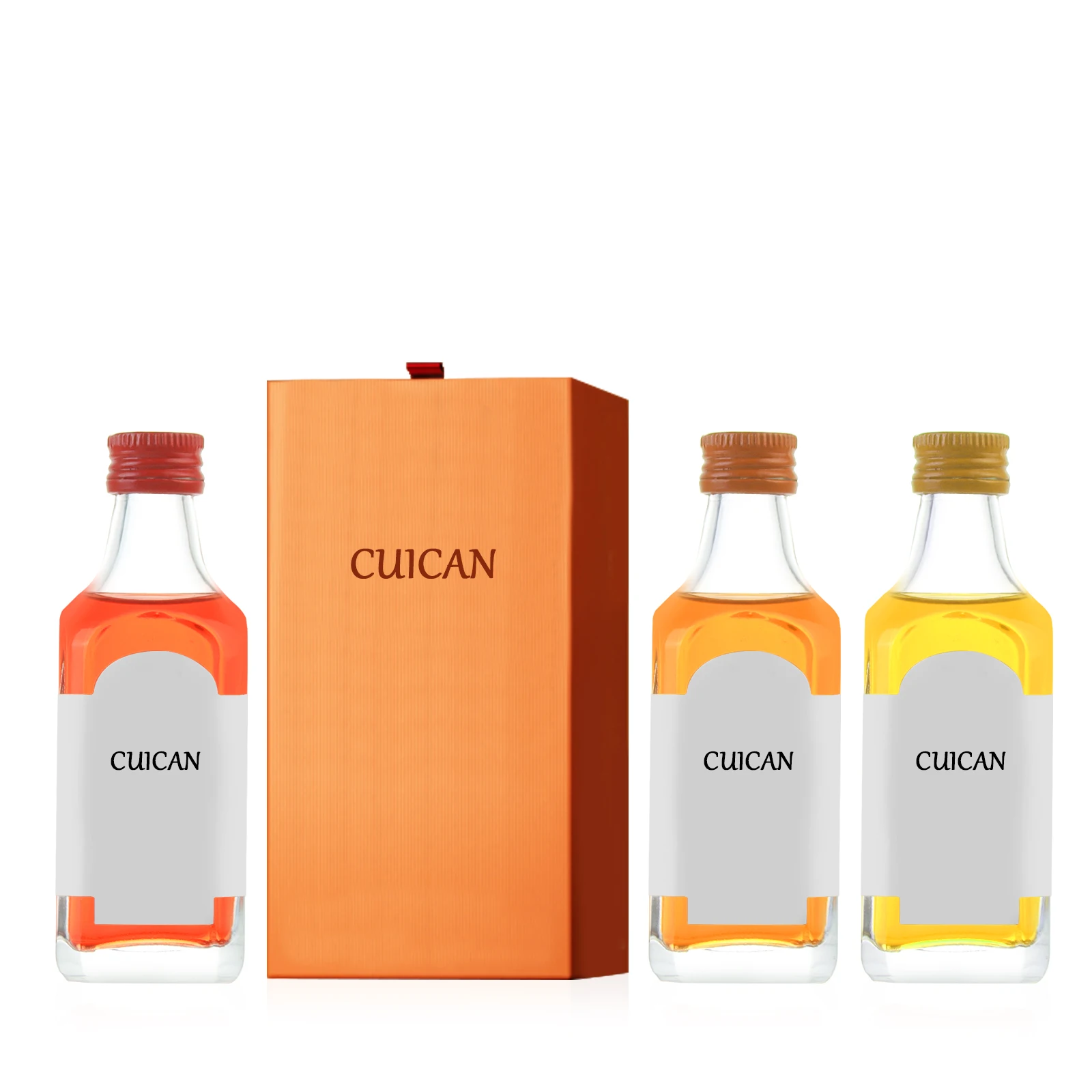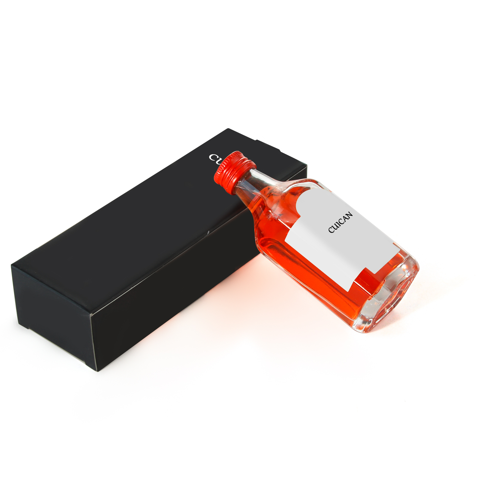 The 50ml liquor bottle’ shape is simple and modern, and the square bottle is convenient for storage. Small bottles not only reduce the cost of production and transportation, but also meet the needs of high-end wines. The transparent bottle body intuitively shows the color and texture of the wine, increasing the appeal of the product. Good sealing and long-term freshness of the wine. It is not only suitable for spirits such as white wine and red wine, but also for non-alcoholic drinks such as packaged juices and carbonated drinks. The bottle has high heat resistance and is easy to clean and disinfect. More conducive to ensuring the health and safety of drink.