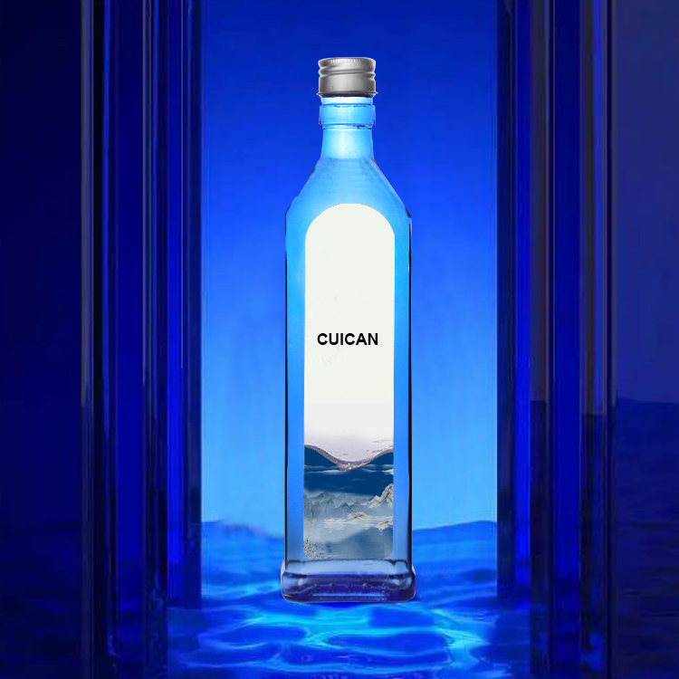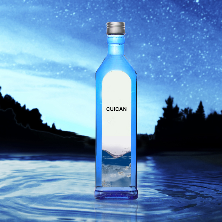 Elegant DesignThe tall, slender shape of theblue glass wine bottle exudes sophistication, making it an attractive choice for premium beverages. Its sleek silhouette is not only visually appealing but also practical for easy handling and storage. |