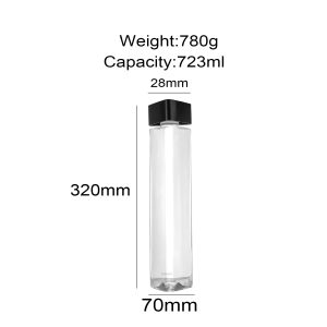 The dimensions of the Clear Wine Bottle Bulk are specifically designed to offer a balance between portability and capacity. With a height of 320mm and a diameter of 70mm, it is easy to handle and pour from, while still providing ample space for the liquid. This size is ideal for both individual servings and for sharing among a group, making it versatile for different occasions.