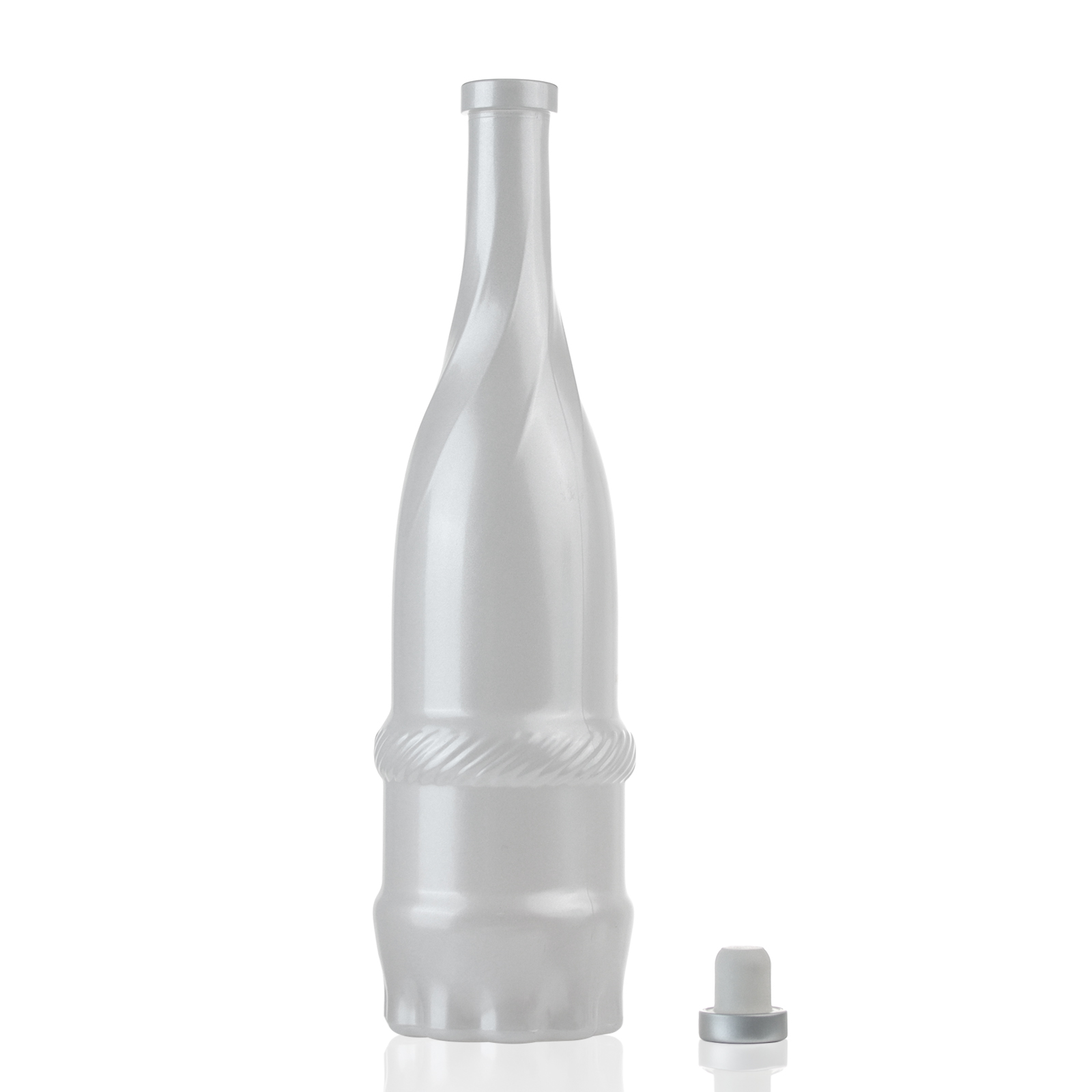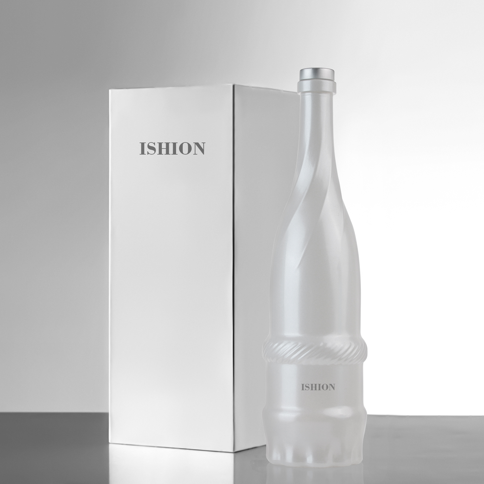 This elegantly crafted Wine Glass Bottle combines minimalist sophistication with artisanal detailing, designed to elevate premium beverages or fragrances. Its smooth, glossy surface transitions seamlessly into a frosted finish, while subtle ribbing and a twisted neck pattern add refined texture. The gently flared base and sculptural silhouette exude timeless luxury, complemented by a sleek metallic cap for a modern touch. Lightweight yet substantial, it balances aesthetic purity with functional durability, making it ideal for high-end branding.