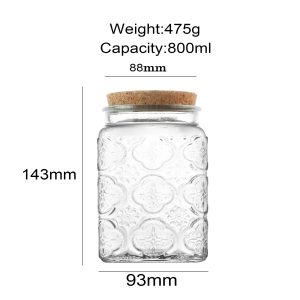 This Square Glass Jar With Bamboo Lid, adorned with beautiful embossed patterns, offers both style and functionality. Crafted from high-quality glass, it ensures durability and is safe for storing a variety of items. The included cork lid provides an airtight seal, ideal for preserving freshness. Perfect for home organization, crafts, or even as a decorative piece, this jar combines practicality with a touch of sophistication.
