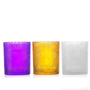 It is a type of container used for holding and displaying candles. Made of transparent or colored glass, it has the effect of burning heat and flame. There are usually various shapes and sizes of the glass, and the type of the glass that can be handled specifically.For example, small candle glasses are often used for votive or tea light candles, while larger candle glasses are used for pillar or jar candles. Some candle glasses also have a decorative design or shape, such as a frosted finish or a unique silhouette. In addition to providing a protective and attractive housing for the candle.It also helps to contain and reflect the light of the flame, creating a warm and inviting ambiance.