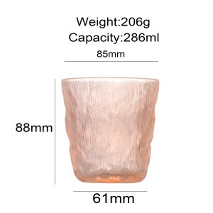 These elegant textured Colored Glass Cups offer both style and functionality, featuring a durable design with capacities of 339ml and 286ml. Available in various colors, they are perfect for everyday use and special occasions, providing a sophisticated touch to any table setting. Their high-quality glass ensures longevity, while the hammered texture adds a unique aesthetic and enhances grip. Ideal for serving a range of beverages, these glasses are a versatile addition to any home.