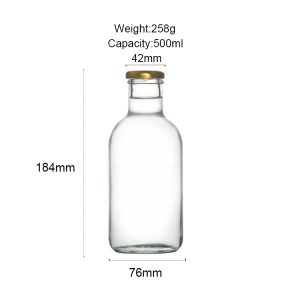 This elegant glass sauce bottles with lids, with a capacity of 500ml, is designed for both practicality and style. Made from high-quality glass, it offers durability and an airtight seal with its metal cap, ensuring the freshness of your beverages or homemade concoctions. Its clear design not only showcases the contents but also complements any setting, making it a versatile choice for storage and display. Ideal for everyday use or special occasions, this bottle combines functionality with a sophisticated aesthetic.