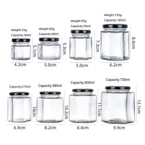 Our High-Quality Customized Glass Honey Jar Wholesale is a distinctive choice for honey, jams, and food storage, offering a unique hexagonal design that sets it apart. Crafted with premium glass for durability and safety, each jar is topped with a secure lid to maintain freshness and prevent leaks. Ideal for both home and commercial use, these jars not only preserve the quality of your products but also enhance their visual appeal. The customization options allow you to tailor the jars to your brand’s identity, making them a perfect packaging solution for gourmet gifts or retail products. With their stylish hexagonal shape and reliable sealing mechanism, these jars are a sophisticated addition to any kitchen or store shelf.