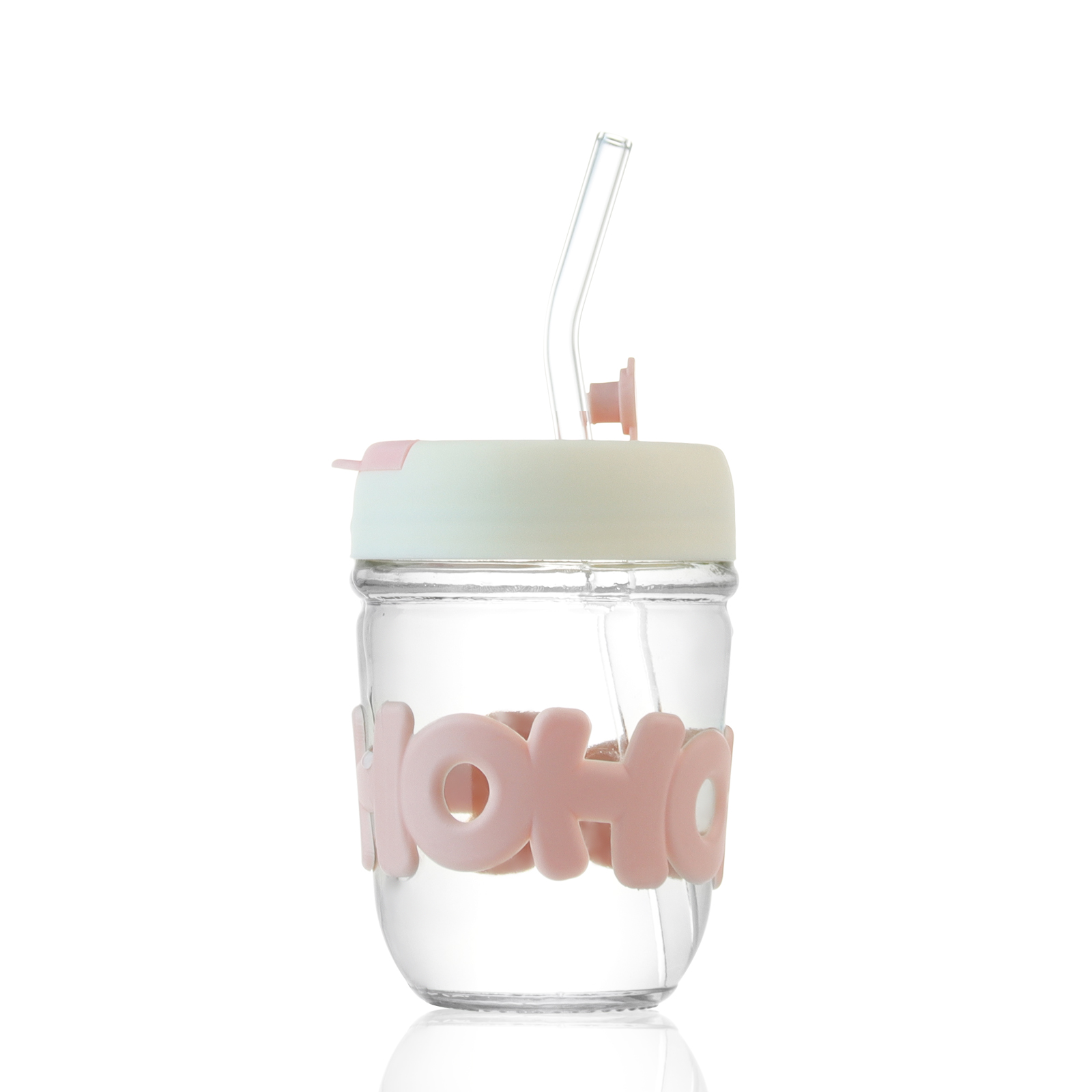 This stylish glass tumbler features a unique design with a clear body and a playful silicone grip that spells “LOHAS.” It comes with a secure lid and a built-in straw for easy drinking on the go. Made from high-quality materials, it’s durable and safe for daily use. Ideal for those who appreciate both functionality and fashion in their drinkware.
