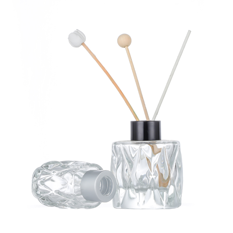 The Wholesale Reed Diffuser Supplies’ bottles showcase a sophisticated, crystal-like design with intricate patterns that reflect light beautifully, enhancing the aesthetic appeal of any space.