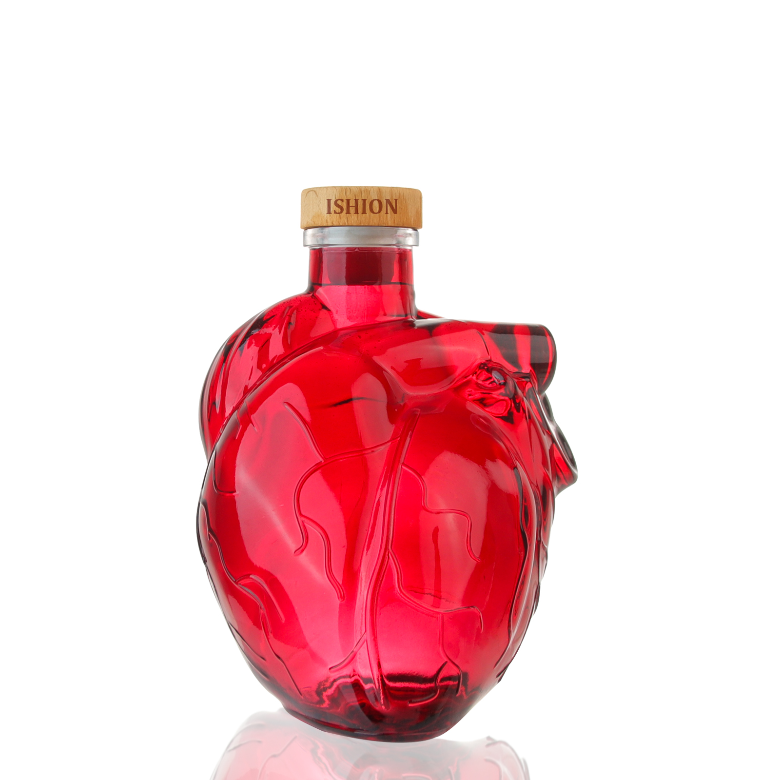 Exquisite Design:The Heart Shaped Glass Bottle Wholesale features a distinctive and artistic design that stands out with its vibrant red color and intricate patterns. This design not only makes the bottle visually appealing but also adds a sense of luxury and sophistication to any setting. The unique shape of the bottle serves as an attractive centerpiece, enhancing the overall aesthetic of any display or collection.