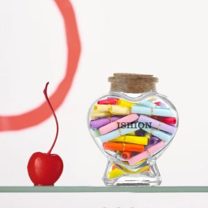 The heart-shaped design of the jar offers a visually pleasing and romantic aesthetic that can enhance the decor of any space. Its elegant shape makes it an ideal choice for displaying on shelves, desks, or as part of a centerpiece. The transparent glass allows the contents to be showcased, adding to the overall charm and appeal of the jar.